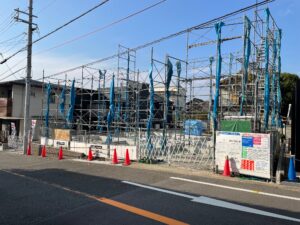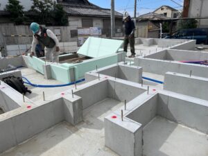 投稿日: 2025年10月31日2025年10月31日 投稿者: hinode_staff東大阪枚岡の家 足場工事まで進行中 枚岡の家の工事、着々と進行中です。 養生期間ののち、型枠をばらしていきます。 先行配管の様子です。木工事に先行して給排水管を仕込んでいきます。 玄関廻りの断熱材敷き込みの様子です。建築基準法では義務付けられているわけではないのですが、断熱性能を確保するには欠せない工程です。 基礎工事が一通り完了した後は、いよいよ木工事に向けて足場を組み立てていきます。 木工事の様子は、後日投稿いたします。 #新築工事 #アイフルホーム #基礎工事 #給排水工事 #足場工事