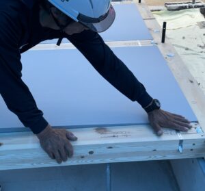 その後、ボルト部分にウレタンを吹き付け、断熱材を敷き、合板を張ります。
