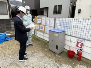 現在進行中の新築現場と会社敷地内を見て頂きました。