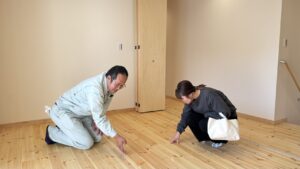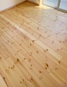 それは、無垢材の床を貼る際には、あえて少し隙間をあけながら施工しているということです。