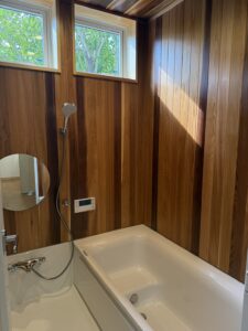 壁一面に木が使われていて、まるで旅館のような特別感があり、毎日の入浴時間が楽しみになりそうだなと思いました。