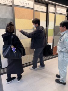 大東の平家🏠ショールーム 先日は、アイカのショールームへ行き、洗面カウンター、キッチンパネル、外壁塗装の仕様について確認して頂きました。外壁のジョリパットはタイルを決めて決定したいと思います。 #アイカ工業#アイフルホーム#新築