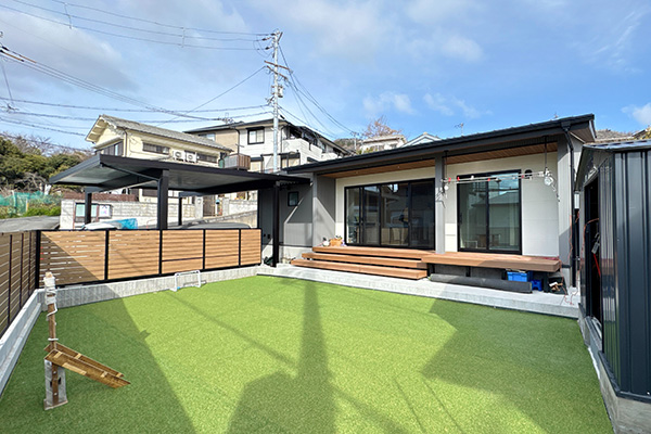 眺望を叶えた平屋のZEHの家勾配天井を生かしたLDKリビングは平屋ならではの勾配天井を採用した事で実際より広く感じられます。 |